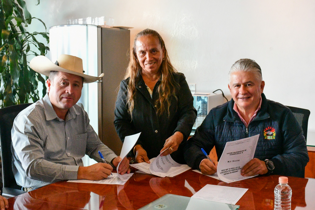 Herminio Cahue Calderón, secretario general del SUTEYM, encabezó las signas de manera conjunta con Edder Jesús Jaimes Garduño, presidente municipal constitucional de Luvianos, y con Roberto Villafaña Nava, presidente municipal constitucional de Zacazonapan.