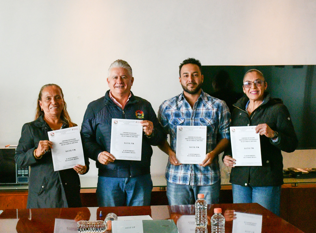 Toluca, Estado de México, 4 de febrero de 2026. En la Casa del Servidor Público Mexiquense, el Sindicato Único de Trabajadores de los Poderes, Municipios e Instituciones Descentralizadas del Estado de México (SUTEYM) llevó a cabo las firmas del Convenio de Sueldos y Prestaciones Socioeconómicas con los Gobiernos Municipales de Luvianos y Zacazonapan.