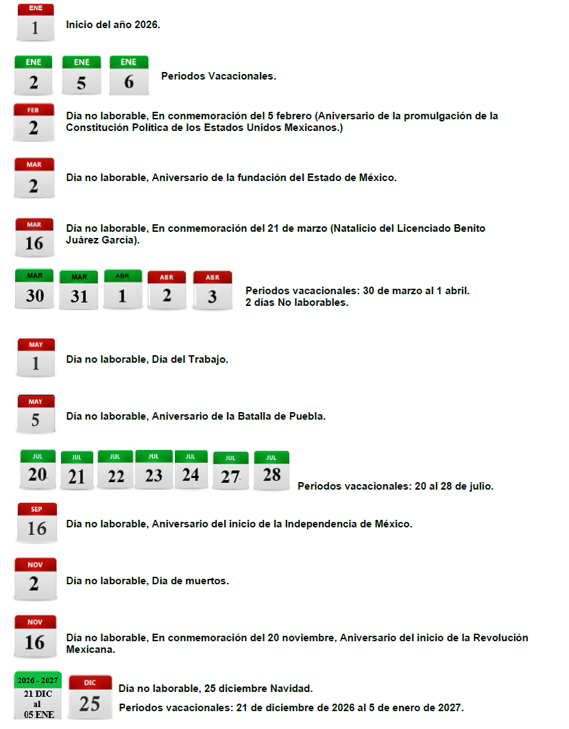 Calendario Oficial que Regirá Durante el Año 2026