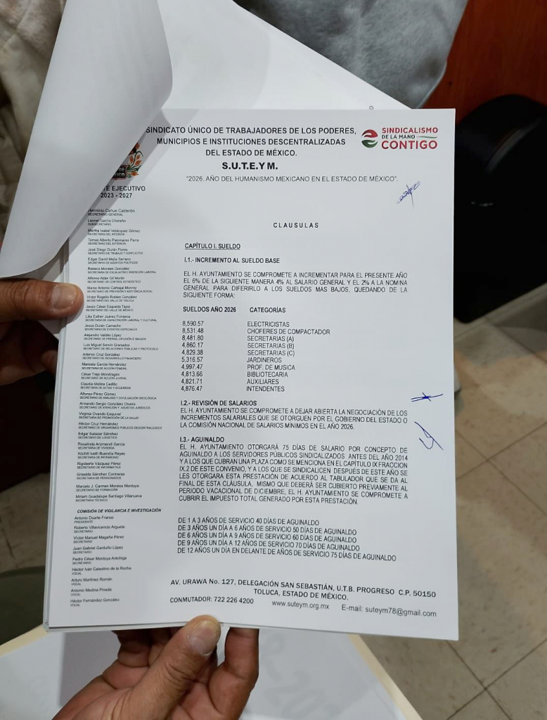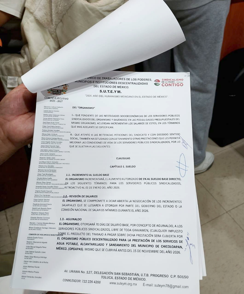 SUTEYM Y CHICOLOAPAN SIGNAN CONVENIO DE SUELDOS Y PRESTACIONES
